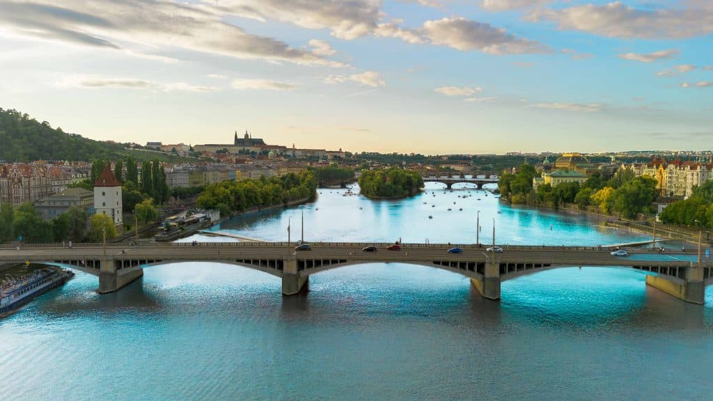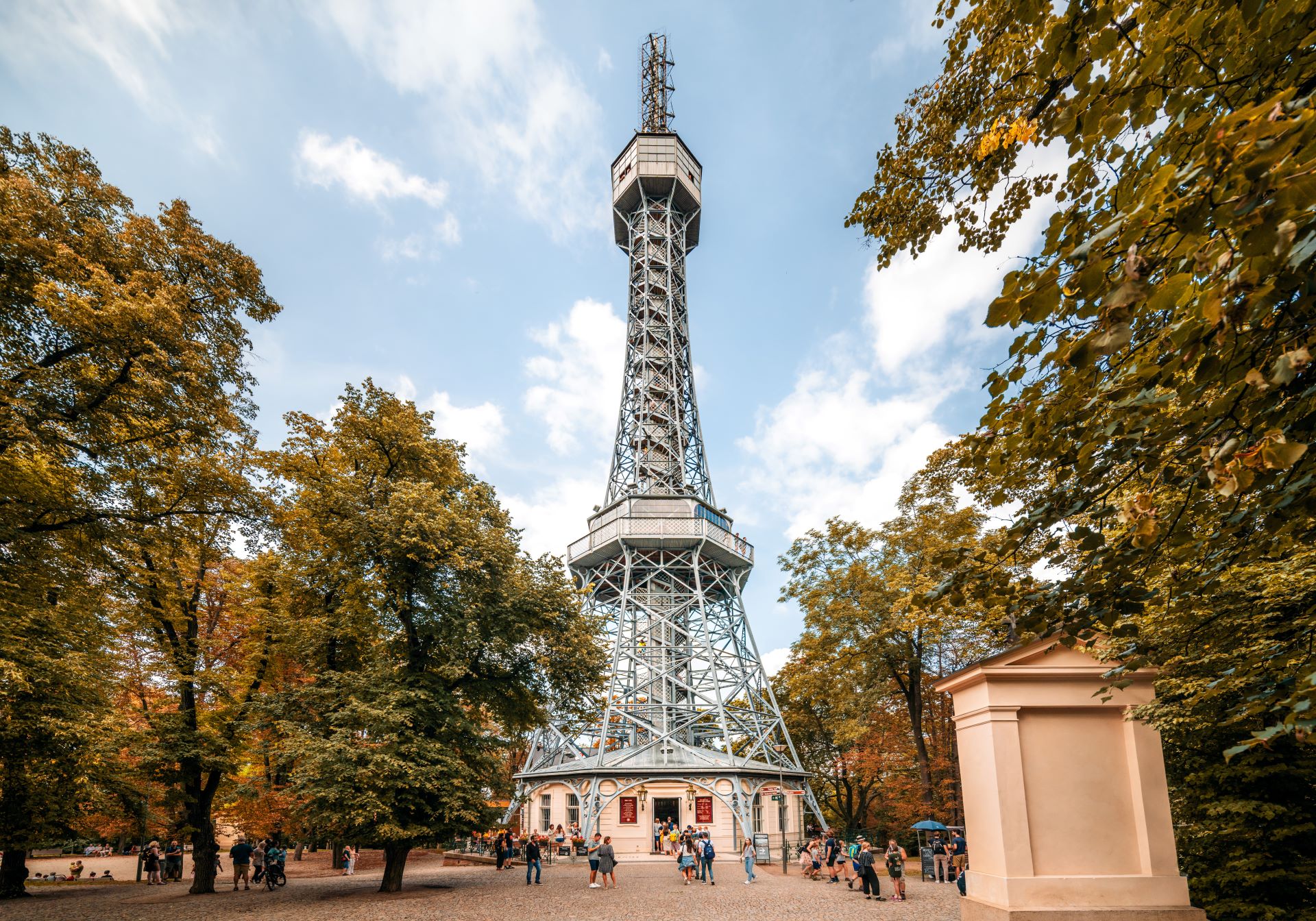 Stačí přejít most a ocitnete se na úpatí Petřína – zeleného kopce plného parků, stromů a stezek vedoucích k dechberoucím výhledům na celé město.