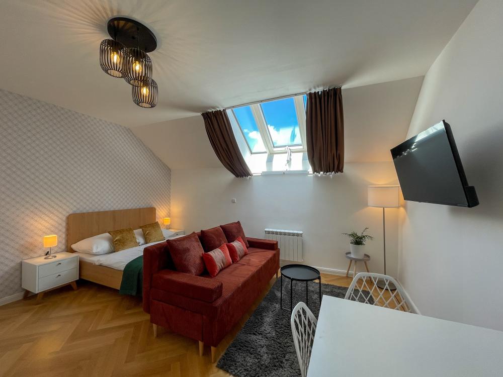 Toto prostorné studio je skvělou volbou pro skupinu až čtyř osob, které hledají pohodlné a útulné ubytování poblíž centra Prahy.Najdete zde pohodlnou manželskou postel a rozkládací pohovku, obě vhodné pro klidný a ničím nerušený spánek. Apartmán má vlastní koupelnu se sprchou a toaletou a také praktický kuchyňský kout se základním vybavením pro přípravu jednoduchých jídel.Ideální pro ty, kteří chtějí spojit dostatek prostoru, domácí pohodlí a výbornou dostupnost do centra města.